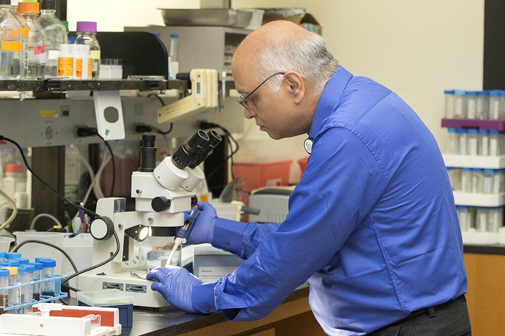 He points out that the plaques and tangles in the brain that have long been associated with Alzheimer’s actually start to show up in middle age, well before people show signs of dementia. These plaques and tangles, first discovered by German psychiatrist and neuropathologist Alois Alzheimer in 1906, are composed of proteins that clump together inside and between the brain’s neurons. Research to find a drug that will reduce existing plaques or tangles has been disappointing. Sambamurti thinks that taking a preventive approach is a better way.