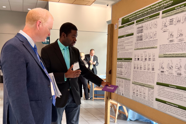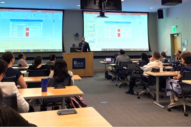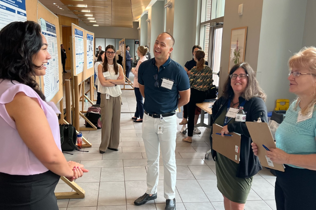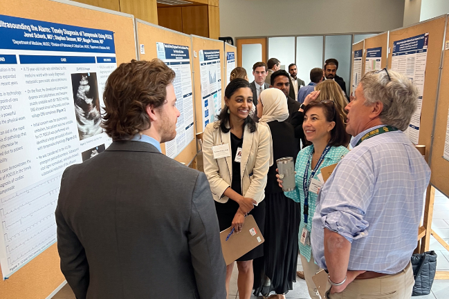 On Friday, April 19, we held our 17th Annual Department of Medicine Research Symposium. A total of 46 abstracts were presented at this year’s event, including 3 from junior faculty, 22 from residents/fellows, 3 from graduate students, 4 from postdoctoral scholars, 6 from staff scientists, research specialists, or program coordinators, and 8 from medical students. Of those abstracts, 4 were selected for oral presentation awards (highlighted below). Congratulations to this year's research poster award winners (featured below)!