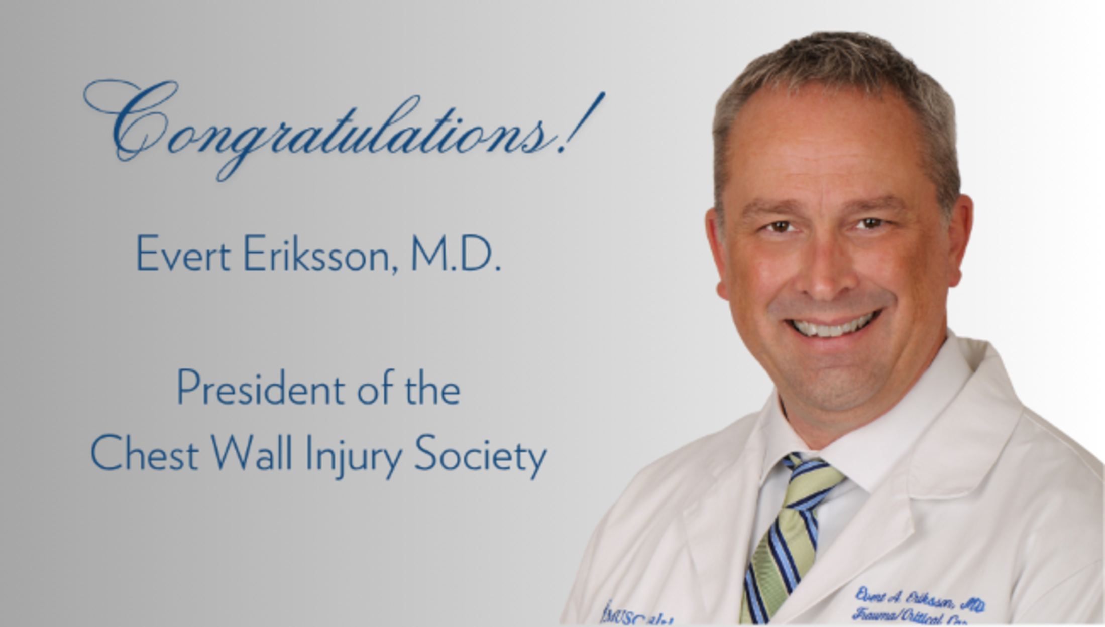 “Dr. Eriksson’s appointment as President of the Chest Wall Injury Society is a well-deserved recognition of his outstanding leadership, clinical excellence, and unwavering commitment to advancing chest wall trauma care,” said Prabhakar Baliga, Chair of Surgery at MUSC. “His work has transformed patient outcomes and continues to shape the field nationally.”