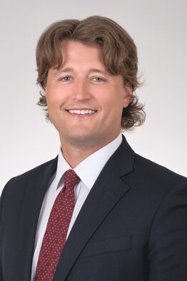 Maxwell Kilcoyne, DO Surgery Developing Teacher wearing a grey suit with a red tie