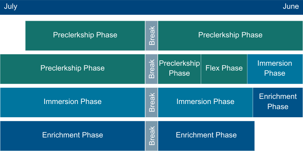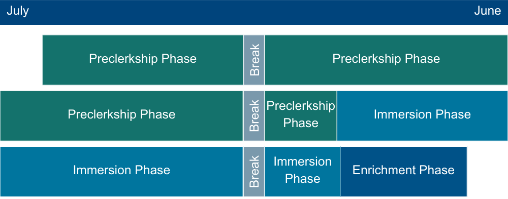 The COM Accelerated Medical Pathway (AMP) offers students the opportunity to meet graduation requirements in three years and comes with a directed pathway into one of 8 participating residency programs at MUSC. AMP aligns with MUSC’s mission of retaining trainees for the state’s physician workforce. All students in the MD program complete the same preclerkship phase curriculum. Eligibility and continued participation is based on sustained demonstration of outstanding academic and professional performance. Students accepted into the program will complete all clerkships, 4 weeks of selectives, an AMP selective, and tailored courses during the final enrichment phase.